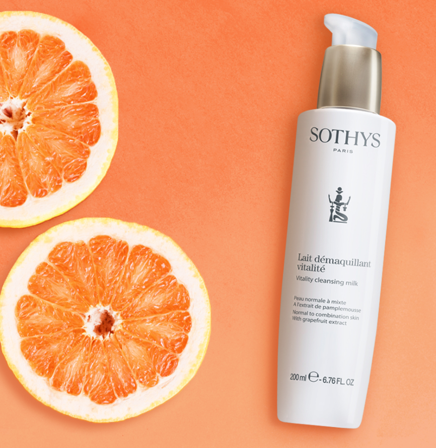 - Un lait frais à l’extrait de pamplemousse pour démaquiller et tonifier.