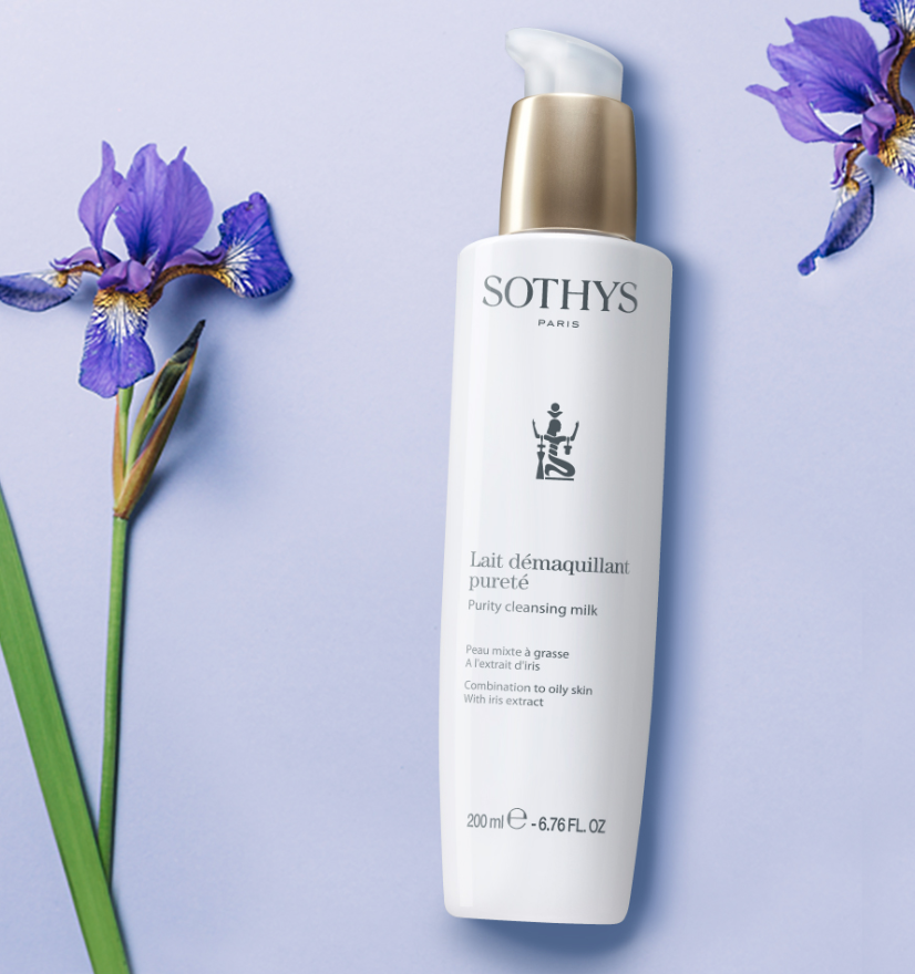 - Un lait léger à l’extrait d’iris pour démaquiller et purifier.